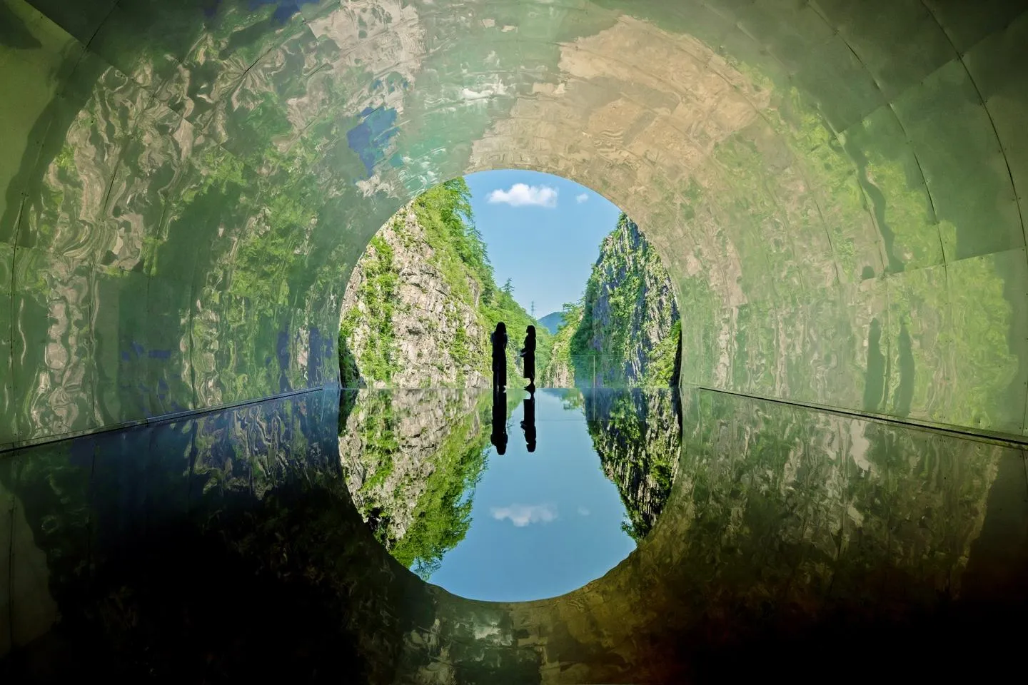 清津峡は、佐渡島ではありませんが、新潟県を代表する絶景スポットのひとつで、日本三大峡谷にも数えられています。長い年月をかけて清津川が削り出したV字型の峡谷は、圧倒的なスケール感を誇り、訪れる人々を魅了します。特に、「清津峡渓谷トンネル」から望む景色は有名で、トンネルの最奥にある水鏡の演出が幻想的な雰囲気を生み出します。床に張られた水が周囲の岩肌や空を映し出し、まるで異世界に迷い込んだかのような絶景が広がります。