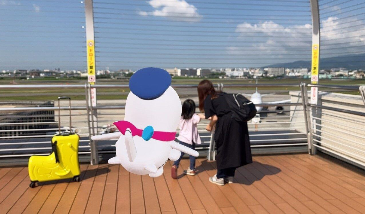 大阪国際空港では、館内の様々なスポットに二次元コードが設置されており、スマートフォンやタブレットで読み取ると、関西エアポートの公式キャラクター「そらやん」がARで登場する特別コンテンツ「そらやんのARフォトスポット」を楽しむことができます。