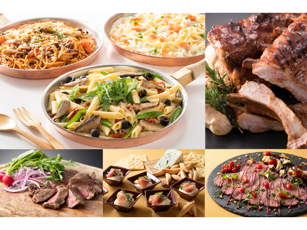 저희는 「코울드 비프와 버섯 마리네이드,」'「등갈비 양념」' 등 다양한 메뉴를 제공합니다. 또한 오픈 키친에서는 셰프들이 바로 눈앞에서「 소 안창살 스테이크」를 준비하고잇습니다.