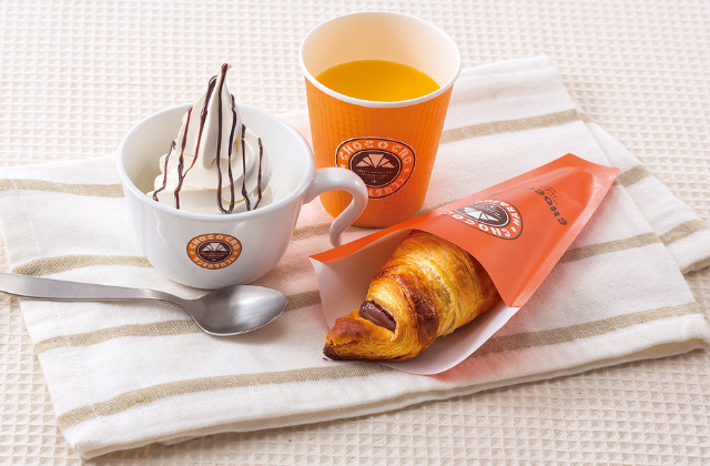 大人気の「チョコクロ」と濃厚なソフトクリームにチョコソースをかけ、 オレンジジュースがセットになっているキッズセットです。