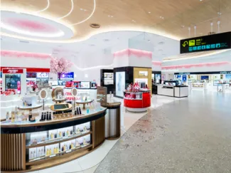関西空港直営総合免税店 エリア最大級の品揃え!!。約2,500㎡を誇るエリアに、日本の空港免税店初出店となるブランドを含む化粧品・香水、世界的有名ブランドから地酒まで多彩なお酒、国内外の豊富なラインアップを揃えたタバコ、日本土産として定番のお土産菓子を幅広く展開する総合免税店です。