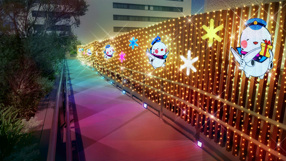「HAPPY TRIP」をテーマに、10万球以上の光を用いて、大阪国際空港の展望デッキを彩ります。