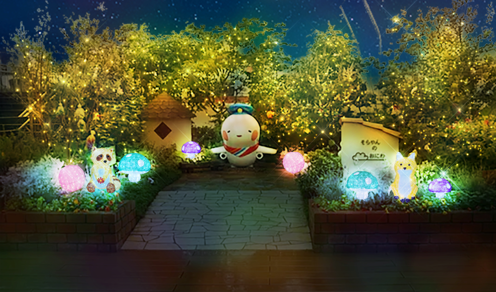 キラキラ輝くそらやんのおにわで、そらやんと一緒に写真を撮ってみませんか?