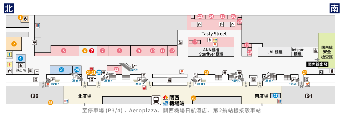 • 洗手間(除南北樓兩側、15號登機口、地下1F之外,殘疾人均可使用)