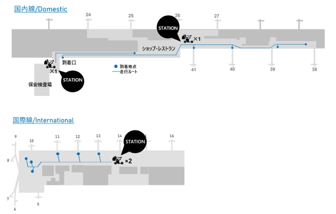 國內線國際線登機區域內引進了WHILL公司的自動駕駛服務,讓不方便長距離移動的旅客,也可以在登機區域內舒適的行動。
